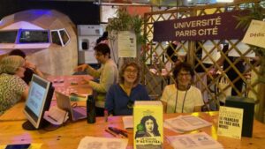 Anne Abeillé et les “linguistes atterrées” ont animé le stand jeu d’UPCité, Faculté Sociétés et Humanités.