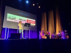 Miniconférences : De la langue « de Molière » aux règles « zombies », interroger la grammaire comme un marqueur social et démonter les mythes du « bon français », explorer les stratégies de féminisation et repenser le lien entre genre grammatical et genre social (Laelia Véron, Julie Neveux, Anne Abeillé, Médéric Gasquet Cyrus, Maria Candea et Christophe Benzitoun)
